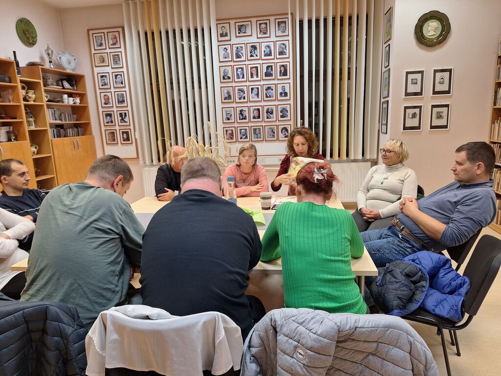 V ponedeljek, 17. novembra 2025, smo se na martinovo spomnili tudi v Občinski knjižnici Žalec. Knjižničarka sem varovancem Sožitja povedala zgodbo o dobrem, ponosnem, predvsem pa silno močnem slovenskem junaku Martinu Krpanu. Varovanci so bili navdušeni nad Krpanovim pogumom, močjo in seveda nad njegovo kobilico, s katero je Krpan tihotapil prepovedano sol. Sledile so Slomškove basni o živalih. Prva je govorila o štirih nadležnih muhah, druga pa o lisici in ježu, ki je potreboval dom. Tega je našel pri lisici, a kmalu se je zgodilo, da je brez doma ostala lisica. Za konec smo prisluhnili še pravljici o goski Violeti, ki je rešila kokoške pred zvito lisico.