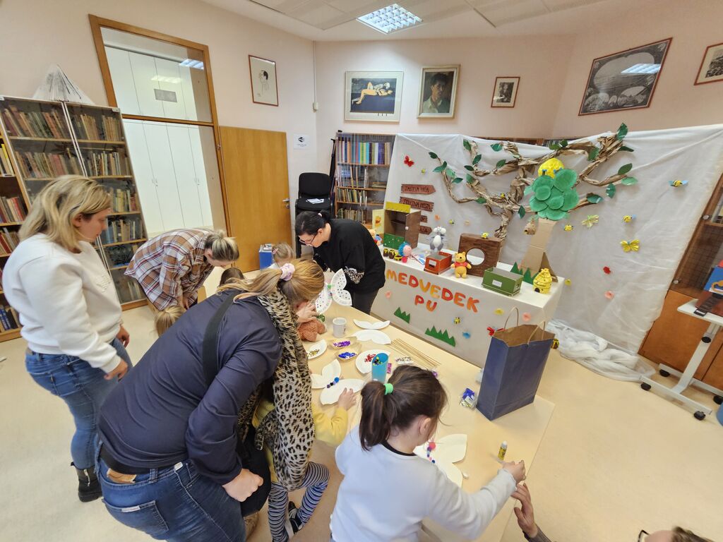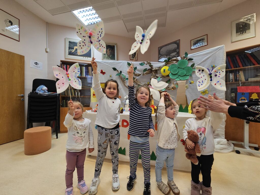 Ob tej priložnosti je knjižničarka pravljico ne le pripovedovala, temveč jo je tudi uprizorila, s čimer je zgodba zaživela na prav poseben način. Otroci so z navdušenjem spremljali dogajanje, se vživeli v like in aktivno sodelovali pri pravljični izkušnji. Po koncu pravljice smo druženje nadaljevali v ustvarjalnem duhu. Skupaj s starši so otroci izdelovali pisane metulje, pri čemer so lahko izrazili svojo domišljijo in ustvarjalnost. Nastali so čudoviti unikatni izdelki, ki bodo še dolgo spominjali na prijetno skupno druženje v knjižnici.