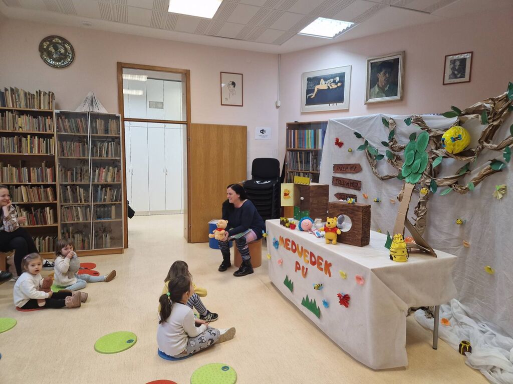 Pravljična urica, ki je potekala v torek, 31. marca 2026, je bila tokrat nekaj prav posebnega in nekoliko drugačna od naših običajnih srečanj. Obiskovalci so se podali v čarobni svet priljubljenega medvedka Puja, ki letos praznuje častitljivih sto let.