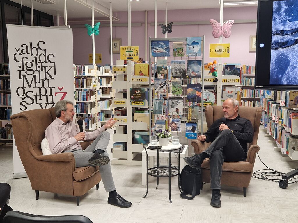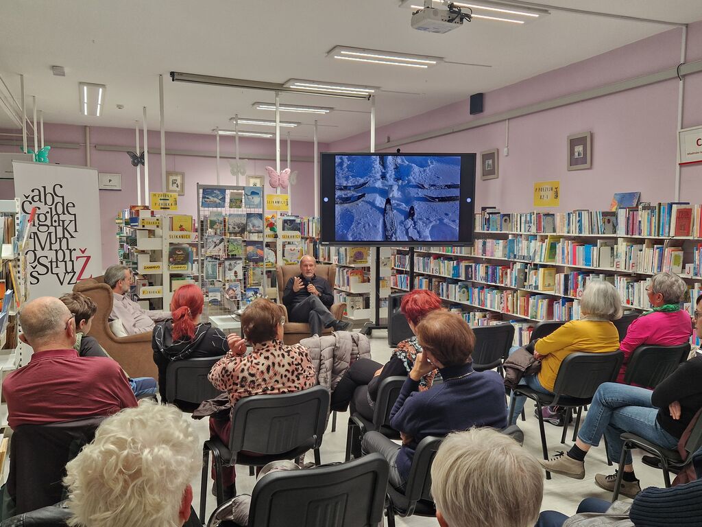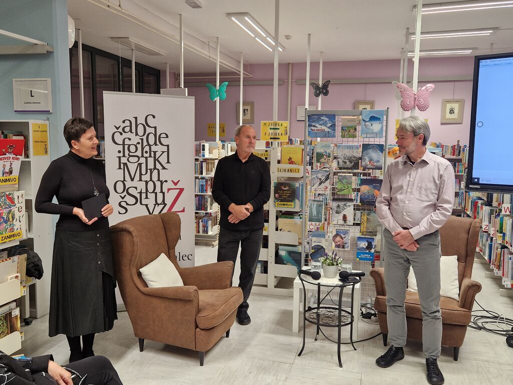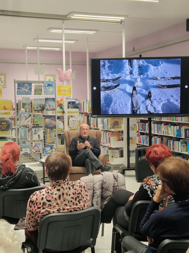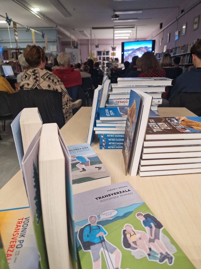 V ponedeljek, 10. novembra 2025, smo bili v Občinski knjižnici Žalec udeleženi v navdihujočem večeru s priznanim alpinistom Vikijem Grošljem in literarnim popotnikom Jakobom Kendo, ki sta nas popeljala po poteh, ki sta jih prehodila in opisala v svojih knjigah. Te so vodile Grošlja od himalajskega visokogorja Križa čez Nepal, prostranstev Arktike in Antarktike iz Mojih 33 odprav do najvišjih domačih vršacev Krone Slovenije in Kendo do ameriškega sredogorja Apalaške poti, celotnega vpogleda v Slovenijo iz Transverzale ter priljubljenih poti po Skandinaviji in Britanskem otočju iz potopisnega romana Evropa: sever, severozahod. Pri tem sta se dotaknila še številnih drugih pozitivnih plati hoje ter opisala svoje osebne motive in razloge, ki so ju vodili na pohode, predstavljene v besedi in sliki. Prelistali pa smo lahko še čisto svežo slikanico Jakoba Kende z ilustracijami Eve Margon Štanta, »ki bi jo morali imeti na nočni omarici vsi Slovenci, a še posebej najstniki in njihovi starši. Prvi, ker so ravno pravih let, da prehodijo vsaj daljši kos slovenske krožne Transverzale. Drugi, ker jih morajo popeljati po njej« (Kenda).
