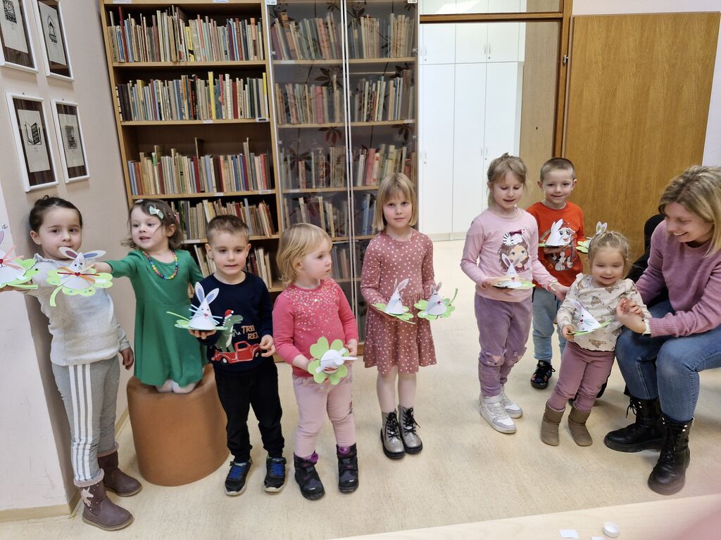 Otroci so prisluhnili pravljici o zajčku, ki je želel svoji mamici podariti nekaj zares posebnega – srečo. Razmišljal je, kaj bi jo najbolj razveselilo, in na koncu našel štiriperesno deteljico, simbol sreče. A mamica mu je nežno razkrila, da je njena največja sreča prav on. Zgodba je otroke spodbudila k razmišljanju o ljubezni, hvaležnosti in drobnih pozornostih, ki prihajajo iz srca.