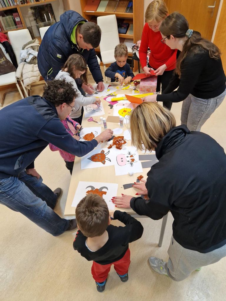 To pa za naše male poslušalce ni bilo konec druženja. Vsak je lahko izdelal svojo kravo, kozo, pujsa ali kokoš in kmalu smo imeli za celo kmetijo živali. Otroci so svoje izdelke zadovoljni odnesli domov. Dogovorili smo se, da se zopet vidimo zadnji torek v marcu.