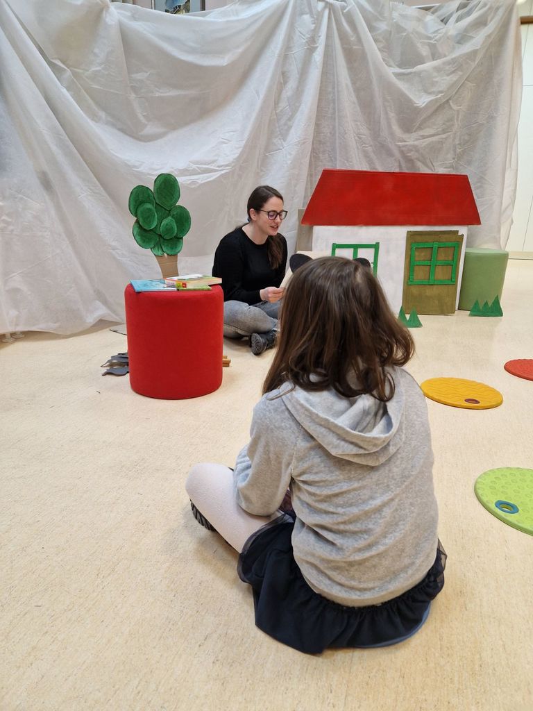 V torek, 28. februarja 2023, je dišalo po pravljici. Otroci so si jo morali zaslužiti in najprej odgovoriti na nekaj ugank. Seveda so bili uspešni in odpotovali smo med pravljice. Tokrat smo ugotavljali, kako lahko ženički pomagamo, da bo svojo malo hiško videla kot ogromno hišo. Modri mož je na pomoč poklical kar kokoš, kozo, pujsa in kravo in res, z vso pravico ga kličemo modri mož, saj je bila ženička na koncu zadovoljna, živali pa mogoče malo manj.