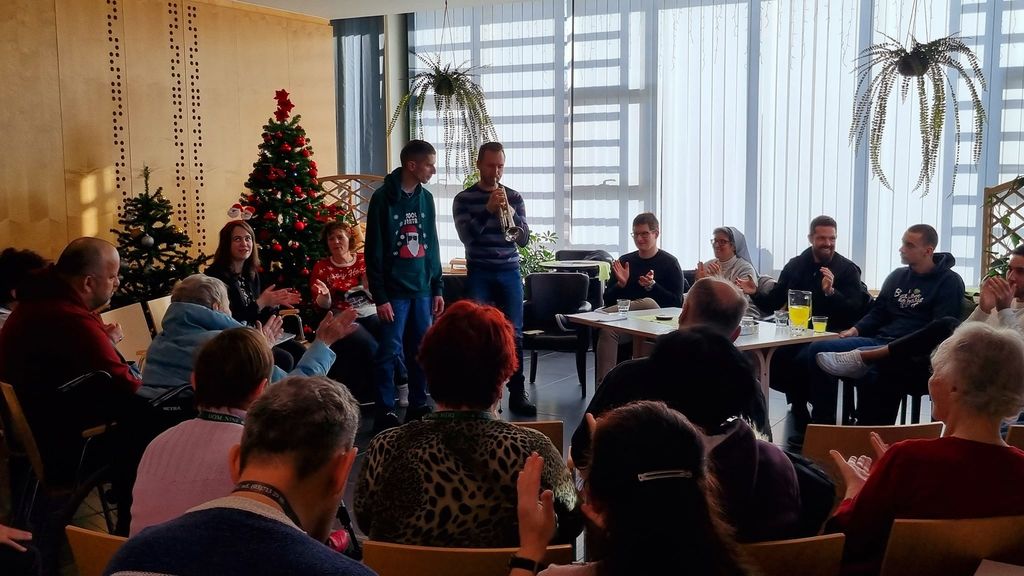 Druženje smo nato nadaljevali z božično zgodbico, ki jo je prebrala knjižničarka Tina, manjkalo pa ni niti glasbe. Knjižničar Andrej je imel s seboj svojo trobento, sestra Cirila in animatorka Brina pa svoji kitari. Skupaj z varovanci smo prepevali slovenske božične pesmi.