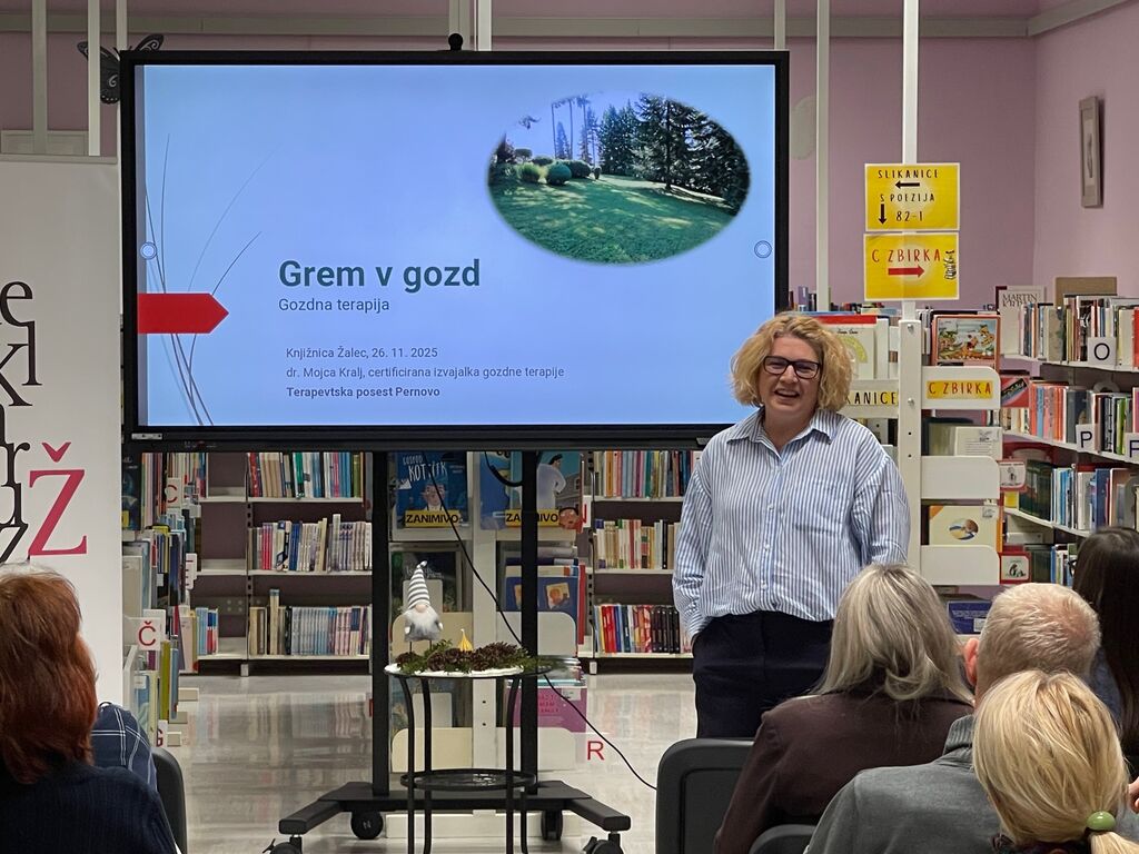 Dokazano je, da se pozitivni učinki na ljudi pojavijo že z dve ali triurnim sprehodom v gozd z vodnikom, ki nas pelje skozi proces odpiranja in prebujanja čutov s poudarkom na povezavi z naravo. To počnemo tudi v Sloveniji. Kaj in kako, nam je pojasnila naša gostja, dr. Mojca Kralj, ki je po osnovni izobrazbi diplomirana medicinska sestra in profesorica defektologije. Doktorirala je iz specialne in rehabilitacijske pedagogike. Svoje strokovno znanje je nadgradila na številnih področjih: psihoterapiji, mediaciji, čuječnosti, montessori inkluzivni pedagogiki, waldorfski pedagogiki, zeliščarstvu in drugje. V letu 2024 se je vključila v izobraževanje prve generacije certificiranih izvajalcev gozdne terapije na Višji strokovni šoli za kozmetiko in velnes Ljubljana. Deluje kot izvajalka dodatne strokovne pomoči učencem s posebnimi potrebami, v zadnjem letu pa ureja butično terapevtsko posest Pernovo za spodbujanje psihološke odpornosti s pomočjo narave, kot so hortikulturna terapija, zvočna terapija, krajši individualni odmiki v naravi ter umetnostne terapije, temelječe na antropozofiji in gozdni terapiji, za katero pravi, da blagodejno deluje na telo, dušo in duha. Gozdna terapija spada med novejše naravne oblike pomoči in podpore človeku. Začela se je pred petdesetimi leti, pri nas temelji na slovenski tradiciji naravnega zdravilstva. Predavanje smo zaključili z mislijo, naj gozd postane prostor sprostitve in miru za vse nas.