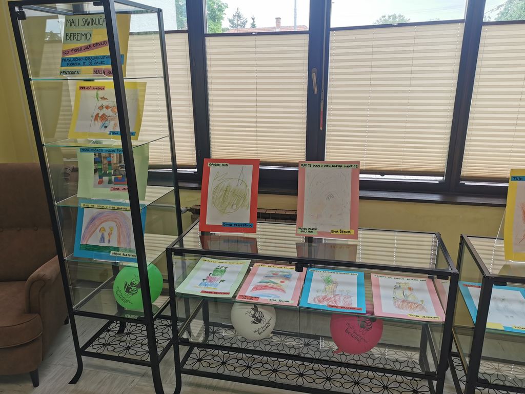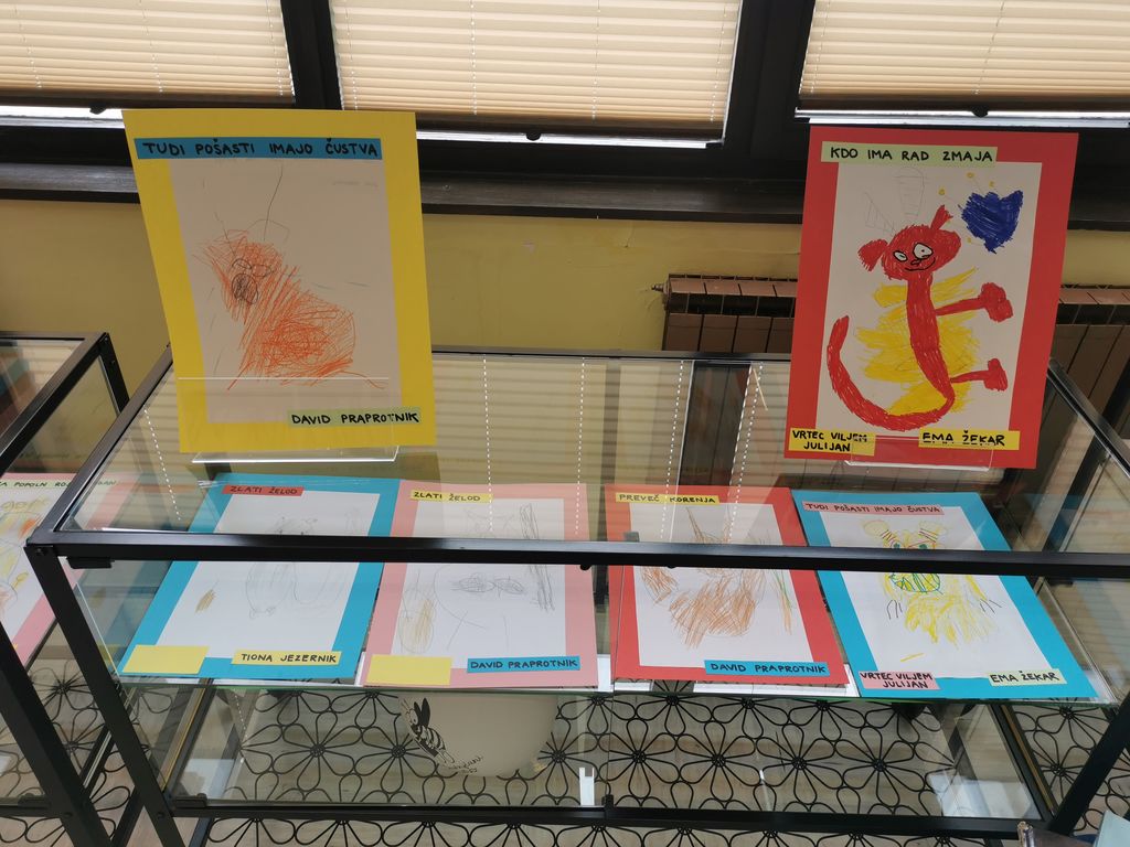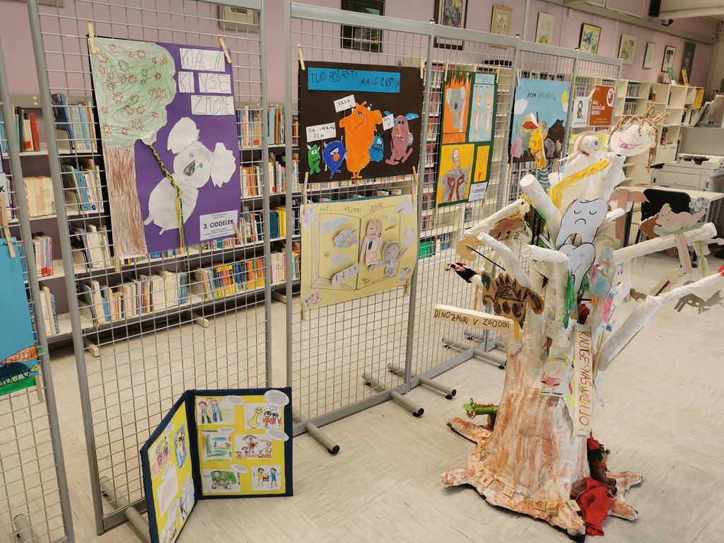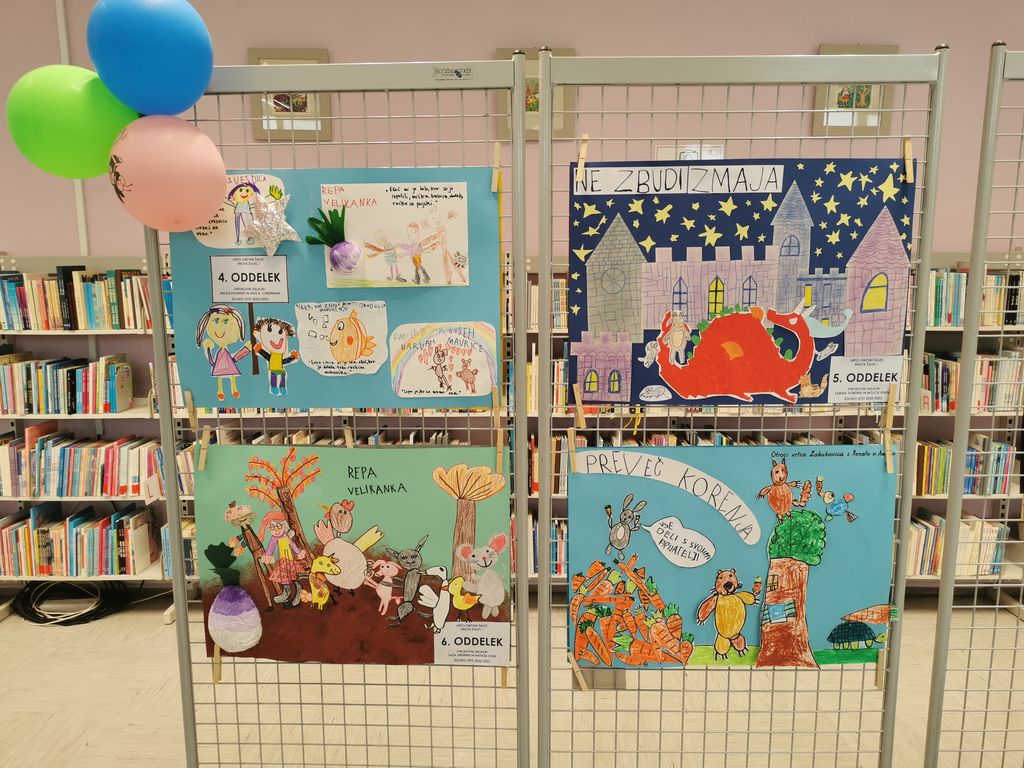 Iz Vrtcev Občine Žalec so strokovne delavke Sabina Žličar, Anja Kajtna in Lea Oblak zbrale ter v knjižnico prinesle 20 plakatov, veliko knjigo in pravljično drevo, saj je vsak sodelujoči oddelek v projektu ustvaril svoj izdelek.