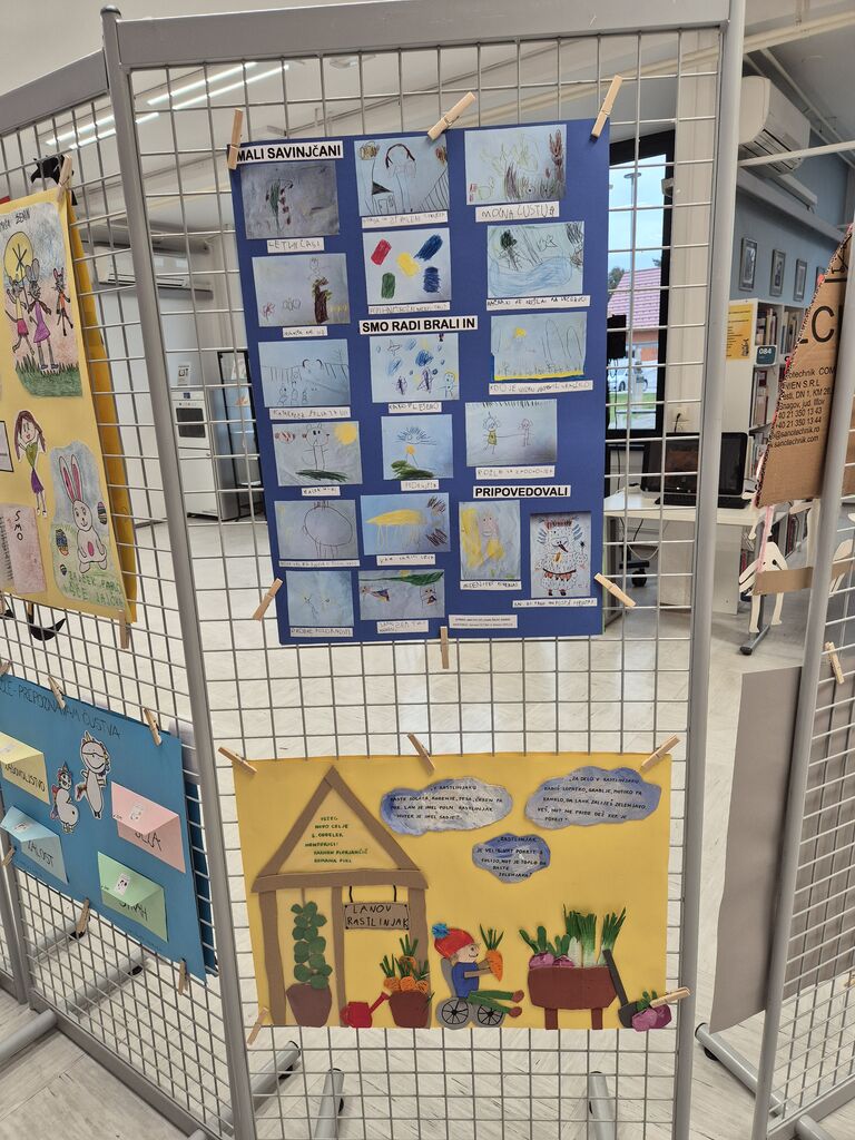 Strokovne delavke Vrtcev Občine Žalec so v Občinski knjižnici Žalec od 1. do 17. aprila 2026 postavile razstavo plakatov, ki so jih soustvarjale z otroki. Vsak oddelek vrtca se je predstavil na svoj, unikaten in poseben način. Priča smo bili pravim umetninam, spoznali smo, katere knjige so otroci brali, zakaj radi berejo in koliko domišljije lahko premorejo vzgojiteljice in otroci.