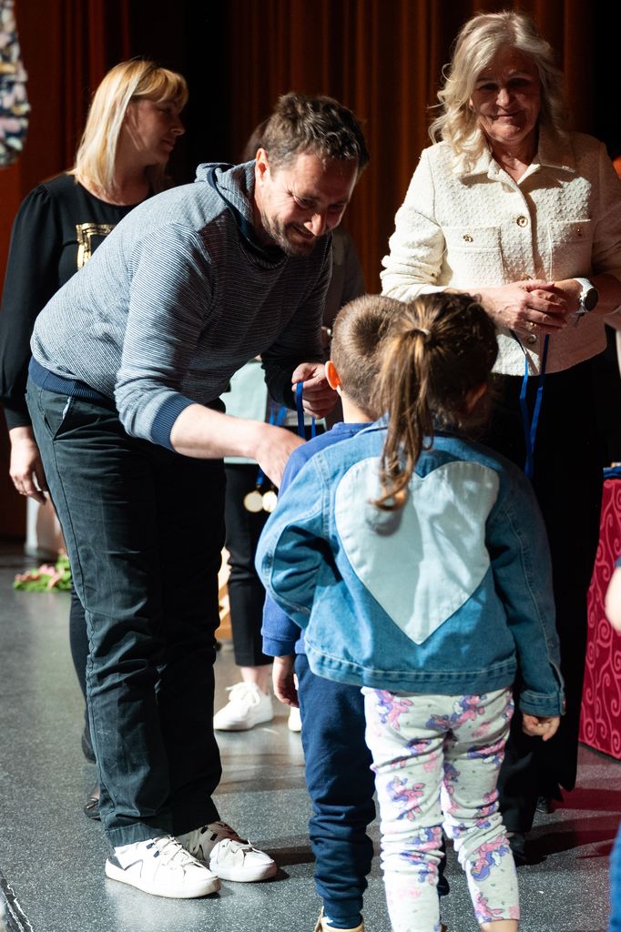 Ker je bilo zelo veliko udeležencev, smo priredili tri zaključne prireditve, ki so potekale ob 16., 17. in 18. uri. Na začetku sta vse zbrane nagovorili Jolanda Železnik, direktorica Medobčinske splošne knjižnice Žalec, in Sabina Žličar, pomočnica ravnateljice Vrtcev Občine Žalec. Obe sta poudarili pomembnost predšolskega branja in pohvalili starše ter strokovne delavce za njihov prispevek k razvoju bralnih navad otrok.