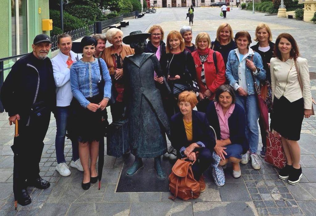 Zaključno druženje skoraj vedno preživimo zunaj, izven običajnih prostorov druženja. Letos smo se zbrali ob kipu Alme Karlin na Krekovem trgu v središču Celju. Bronasti kip sta si zamislila in ga izdelala Ana Ćetković Vodovnik ter njen mož Vasilije Ćetković – Vasko, akademski kipar. Kip sta Celju podarila. Ponazarja odhod Alme Karlin na železniško postajo. V rokah nosi Eriko, znameniti pisalni stroj. Postaja je sicer v nasprotni smeri, vendar pravijo, da je Alma postavljena tako, kot da se je še zadnjič ozrla proti Celju. Nastanek kipa je predstavila bibliotekarka iz domoznanskega oddelka žalske knjižnice Karmen Kreže.
