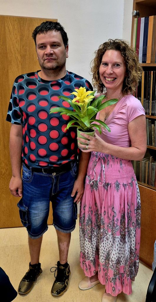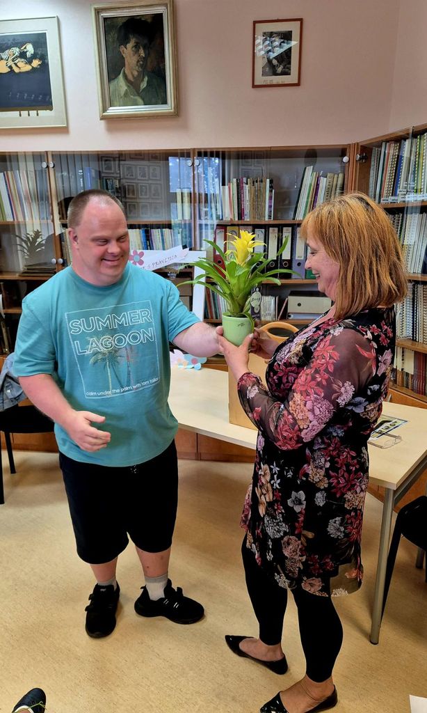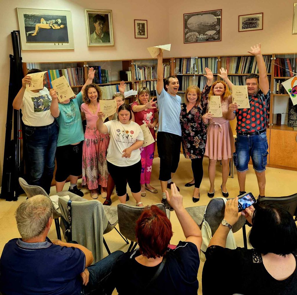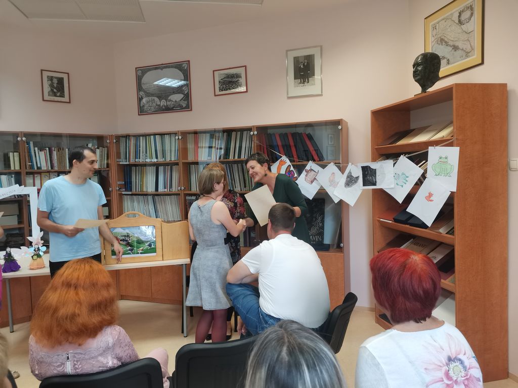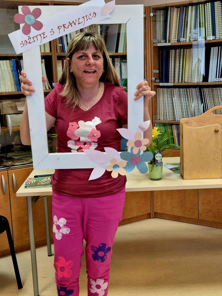 Sledila je podelitev priznanj za sodelovanje na druženjih. Izročala jih je direktorica knjižnice Jolanda Železnik in vsakemu stisnila roko. Za spominsko fotografiranje smo izdelali poseben okvir, nastale so ganljive in spomina vredne fotografije. Nataša Koren, ki bo v novi sezoni prevzela druženja s Sožitjem, je v zaključku prireditve z zabavnimi ugankami razvedrila vzdušje.
