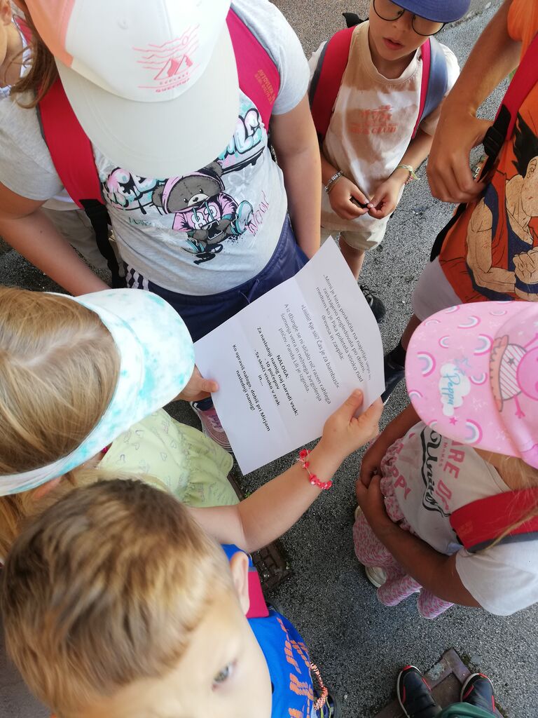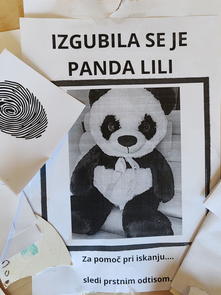 V drugem delu tedna jih je čakalo posebno poslanstvo – najti izgubljeno pando Lili. Po mestnih ulicah so sledili skrivnostnim namigom in iskali papirnate prstne odtise, ki so jih nazadnje pripeljali do Knjižnice Žalec. Tam so s ponosom pokazali svoje detektivske izkaznice in značke, nato pa se lotili novih izzivov: matematičnih ugank, rebusov, gibalnih nalog in ustvarjalnega risanja svojih dogodivščin.