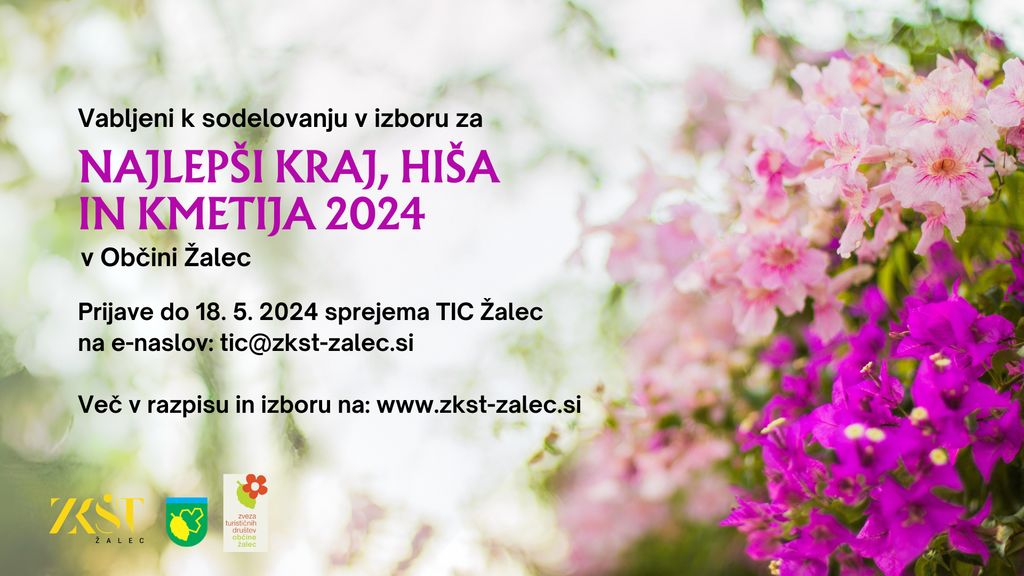 Prijazno vabljeni k sodelovanju v izboru za Najlepši kraj, hišo in kmetijo v občini Žalec za leto 2024.