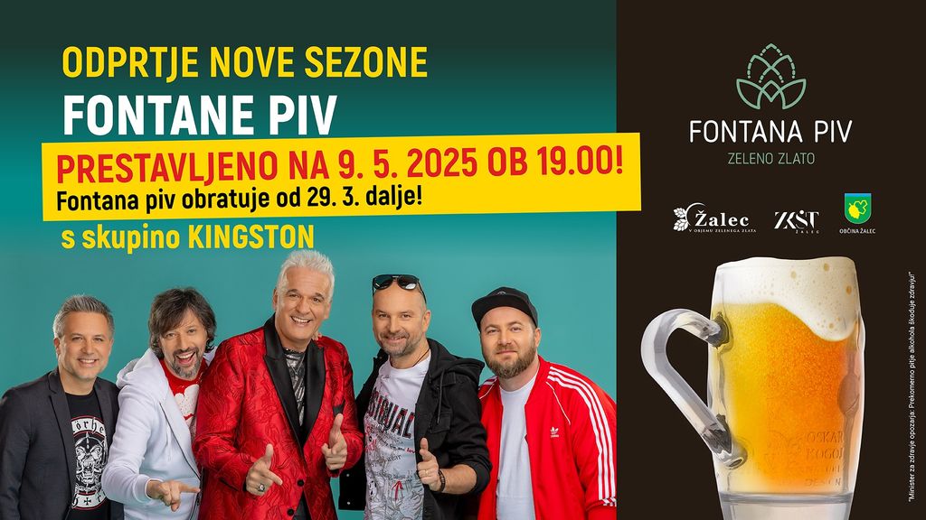 Zabavno prireditev z razkritjem nove ambasadorke fontane in priljubljeno skupino Kingston pa organizator zaradi napovedi slabega vremena prestavlja na petek, 9. maja 2025, ob 19. uri.