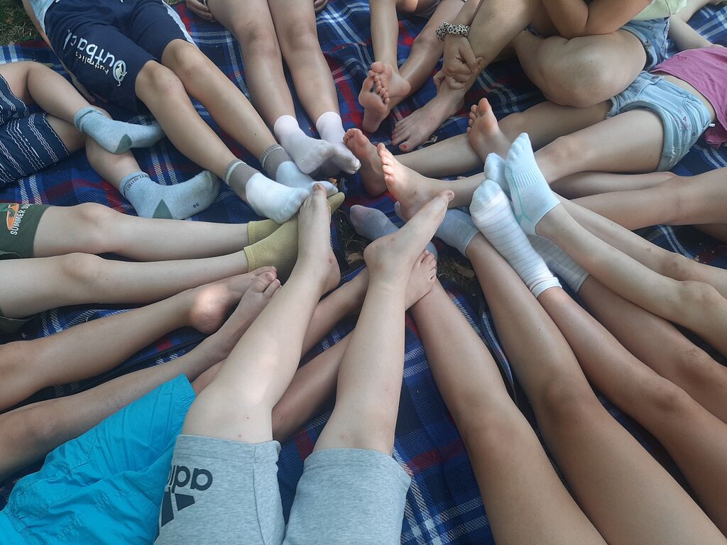V ponedeljek smo se spoznavali preko zabavnih iger in se razgibali v bližnjem parku. Popoldne smo ustvarjali, se igrali besedne igre in igre ugibanj – smeha in domišljije ni manjkalo!