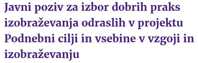 Namen projekta je sistematično vključevanje podnebnih ciljev in vsebin v izobraževanje odraslih ter spodbujanje prilagajanja in blaženja podnebnih sprememb.