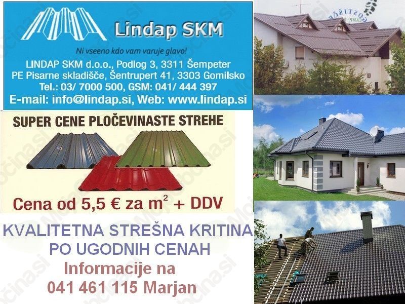 V podjetju LINDAP SKM d.o.o. se ukvarjamo s prodajo strešnih kritin , zastopamo več proizvajalcev jeklenih strešnih kritin kot;BORGA,BUDMAT-jeklene kritine in highbond,
