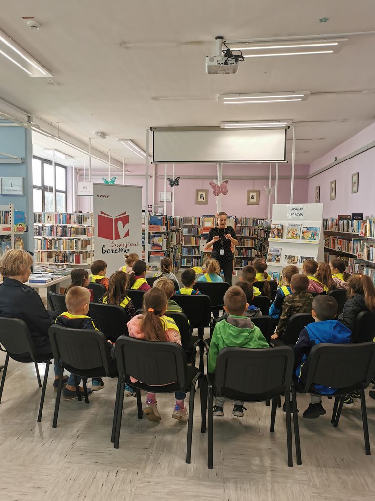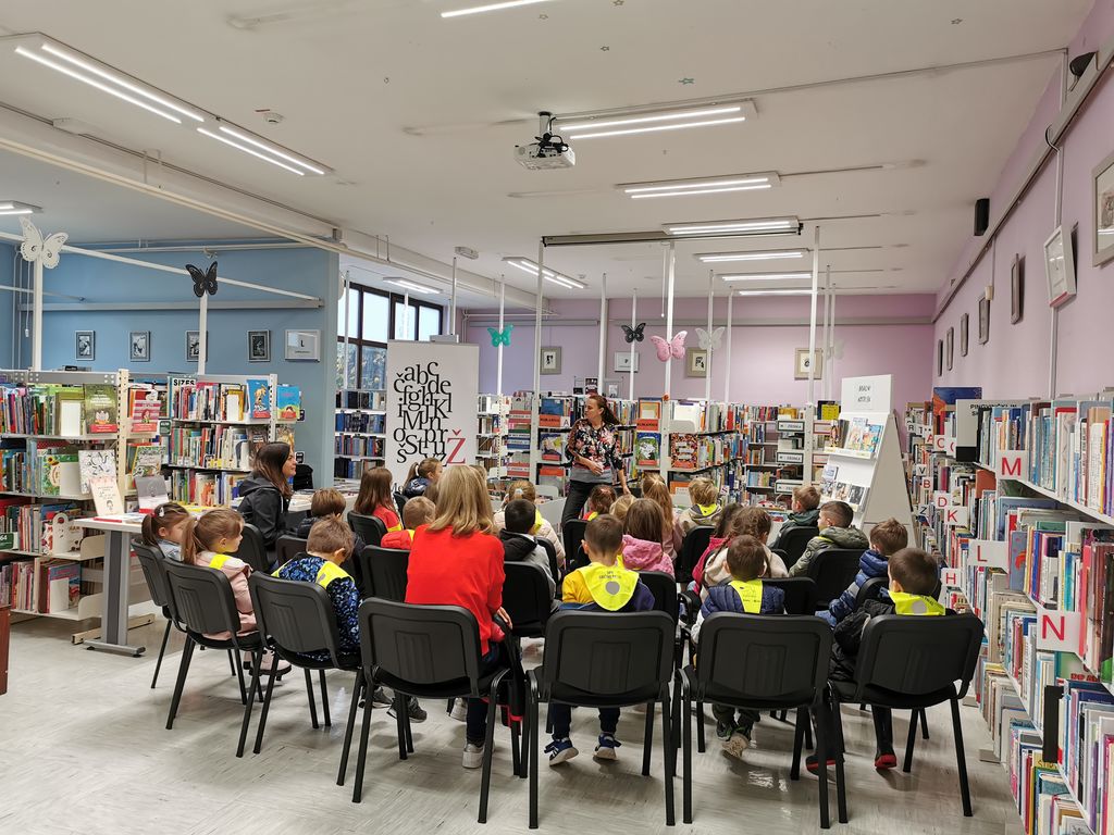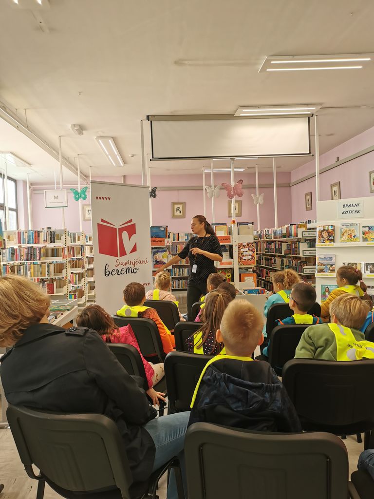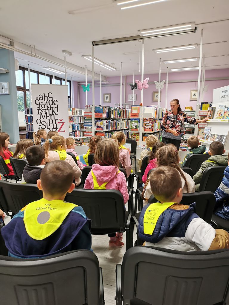 V jesenskem času povabimo na obisk v knjižnico prvošolce. Tokrat smo sprejeli žalske prve razrede. Pokazali smo jim, kje lahko najdejo knjige, primerne njihovi starosti in knjige, ki so napisane na temo, ki jih zanima. Predstavili smo jim način izposoje knjig in jih spodbudili, da se čim večkrat oglasijo v knjižnici. Pravljica o veverici, ki je rada tekmovala, jih je spomnila, da smo včasih uspešnejši, če sodelujemo.