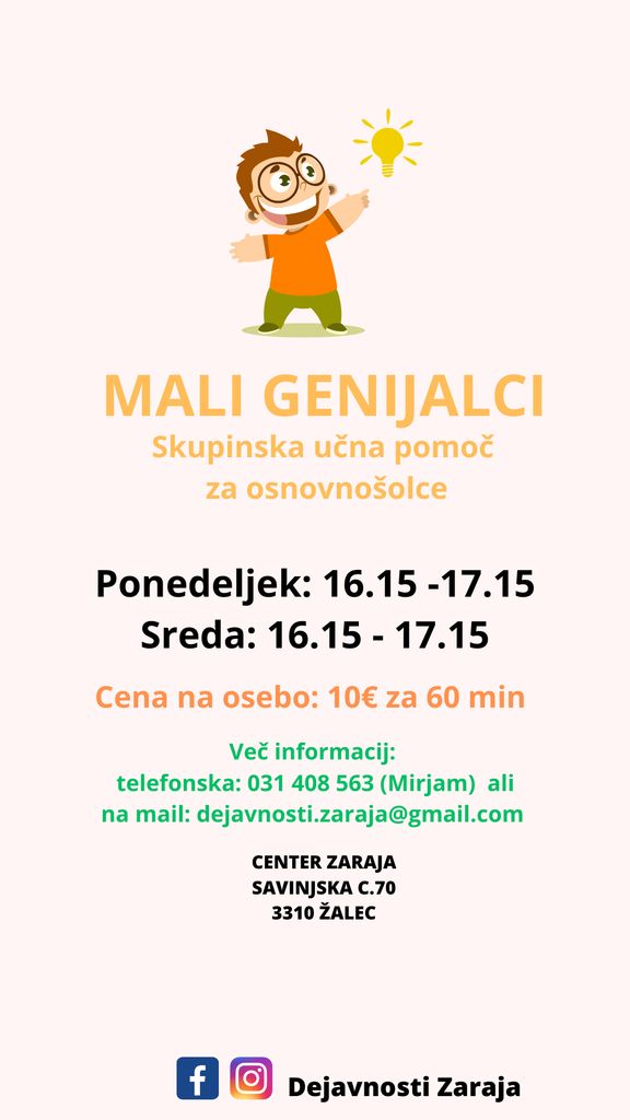 V Centru Zaraja v Žalcu ponujamo individualno učno pomoč ali skupinsko učno pomoč - Mali genijalci.