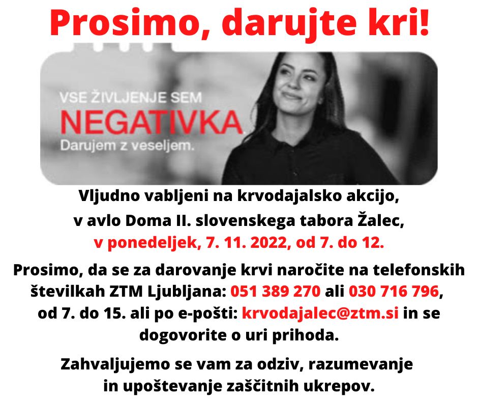 Zaloge krvi ljubljanske transfuzijske službe niso najbolj navdihujoče: http://www.ztm.si/krvodajalstvo/zaloge/, zato ste vljudno vabljeni na krvodajalsko akcijo.
