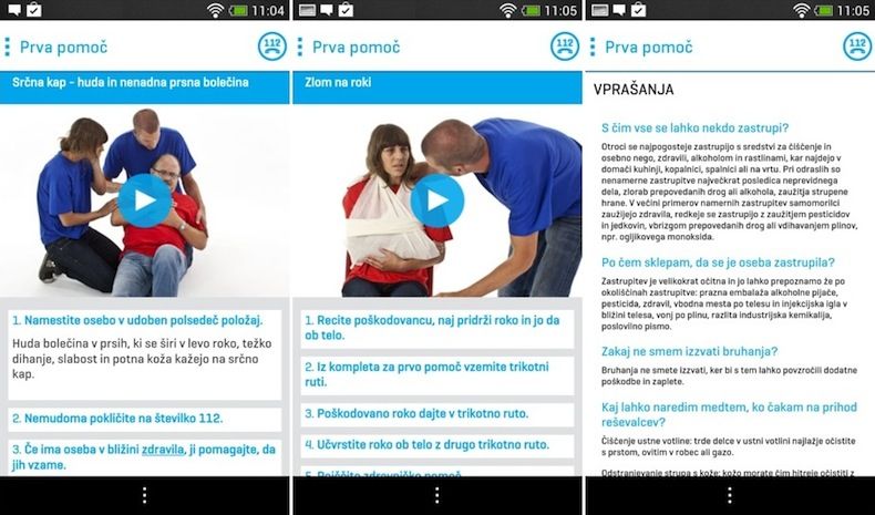 Vsebuje seznam najpogostejših poškodb in obolenj ter postopkov prve pomoči. Namestite si jo na pametne telefone z aplikacijo Trgovina Play: https://www.rks.si/sl/Mobilna_aplikacija_za_prvo_pomoc_3/.