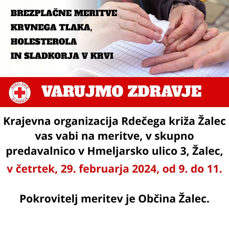 Vabljeni na brezplačne meritve krvnih vrednosti, v četrtek, 29. 2. 2024