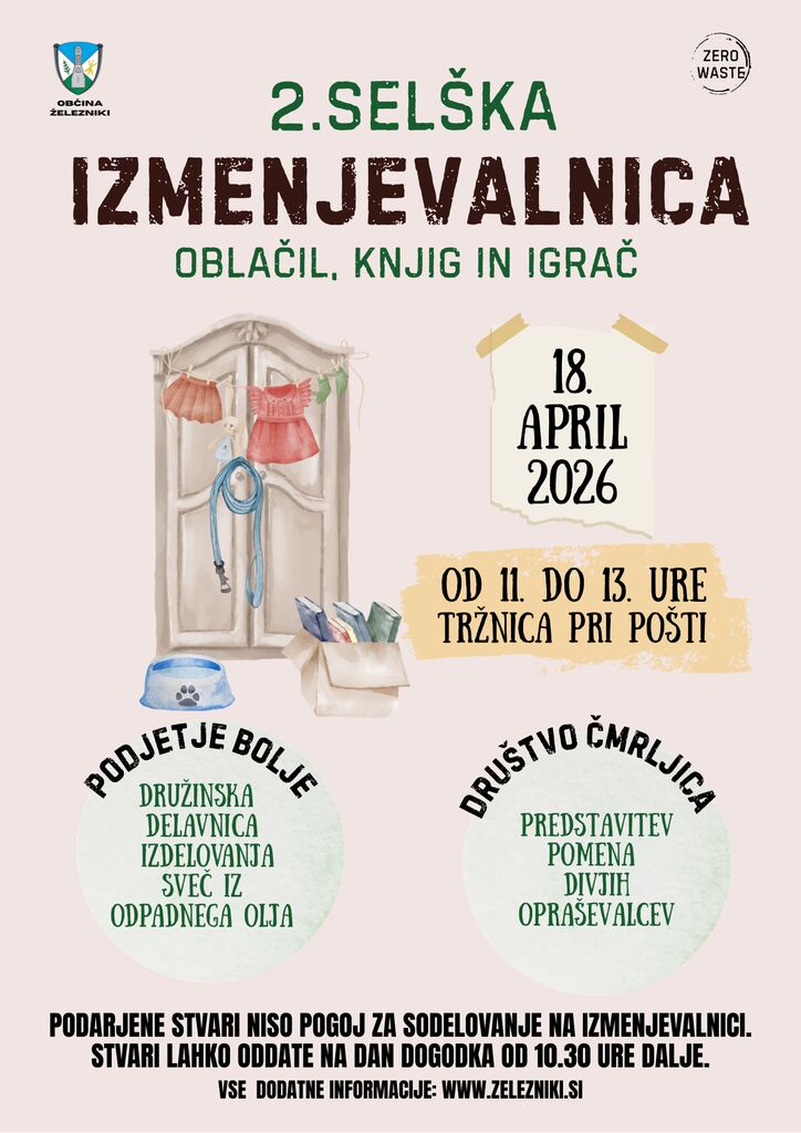 Prinesi jih na 2. Selško izmenjevalnico oblačil, knjig in igrač in jih zamenjaj za nekaj “novega” – zase, za otroke ali za bližnje in tokrat tudi za vaše hišne ljubljenčke.