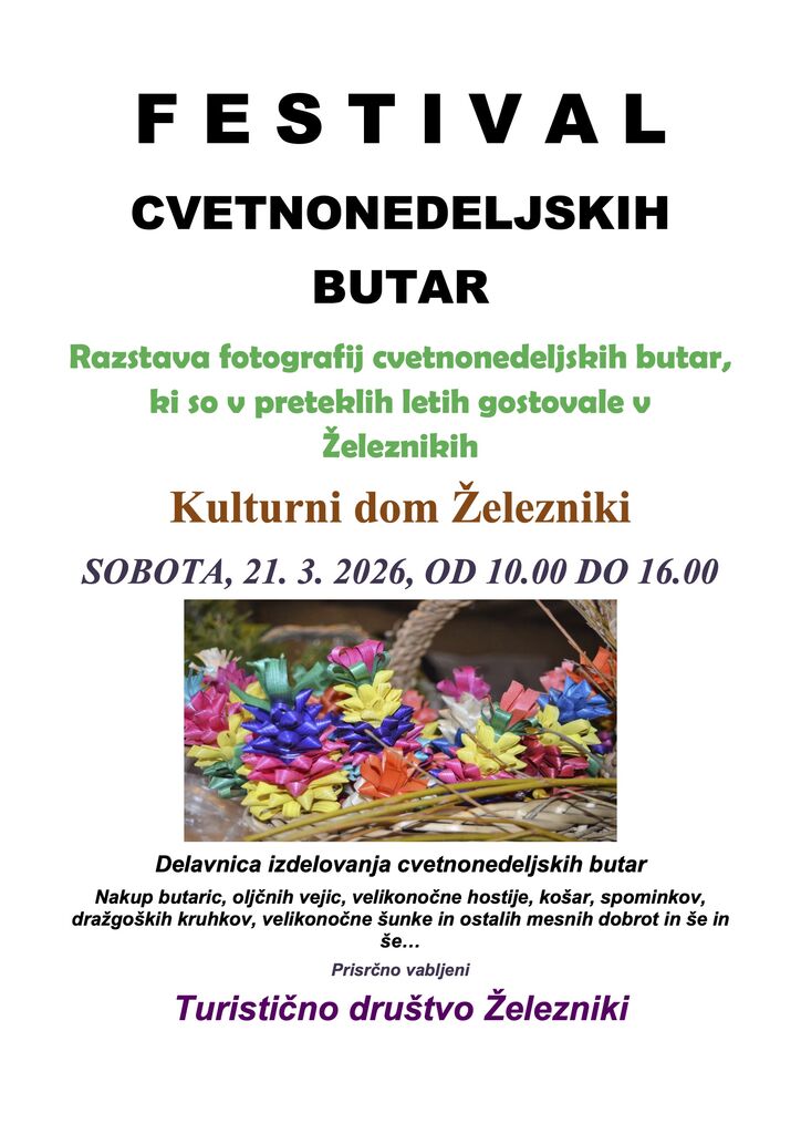 Nakup butaric, oljčnih vejic, velikonočne hostije, košar, spominkov, dražgoških kruhkov, velikonočne šunke in ostalih mesnih dobrot in še in še…Prisrčno vabljeni