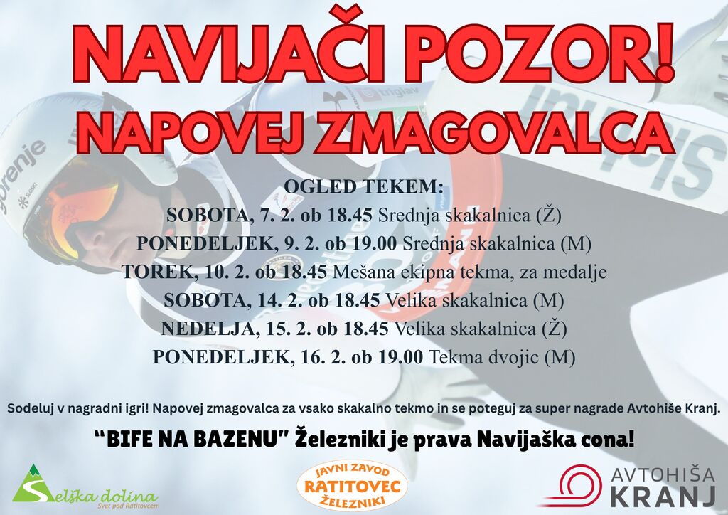 Sodeluj v nagradni igri! Napovej zmagovalca za vsako skakalno tekmo in se poteguj za super nagrade Avtohiše Kranj.