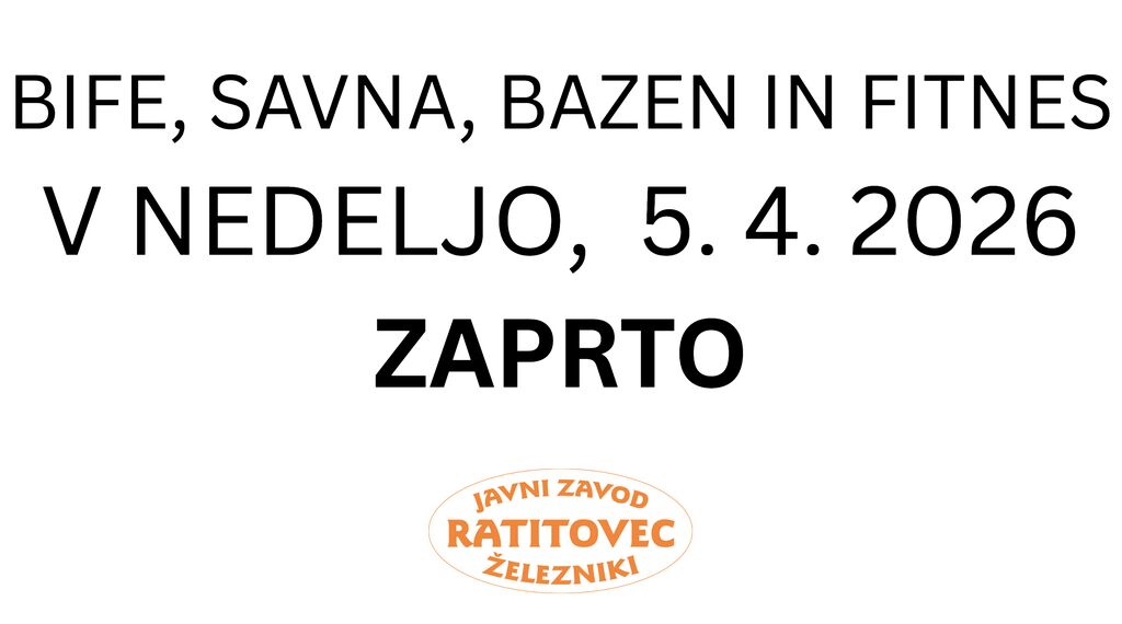 BIFE, SAVNA, BAZEN IN FITNES V NEDELJO, 5. 4. 2026 ZAPRTO