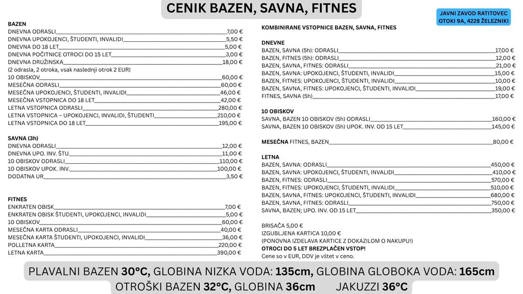 CENIK BAZEN, SAVNA IN FITNES
