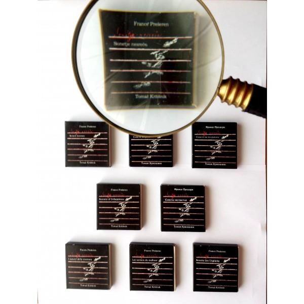 Ponatis Prešernovih sonetov z grafičnim oblikovanjem Tomaža Kržišnika sta omogočili Občina Žiri in M-Sora.