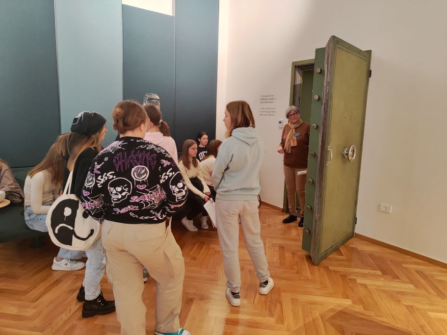 Ker smo radovedni in nimamo prav pogosto možnosti obiskati Ljubljane, pa brskanje po knjižnih novostih vsako leto združimo še s kakšnim zanimivim ogledom. Tokrat smo se pred obiskom sejma mudili v novem muzeju na Čopovi ulici, posvečenem zgodovini denarja in bančništva na Slovenskem – ogledali smo si Bankarium. Poznamo več vrst pismenosti, ena izmed njih je finančna in tudi ta pomembna za naše vsakdanje življenje. Zanimivo je bilo videti, kako izgleda bankomat od znotraj, ali preizkusiti, kako težka vrata varujejo bančni trezor. Skoraj kot v filmih!