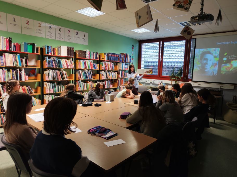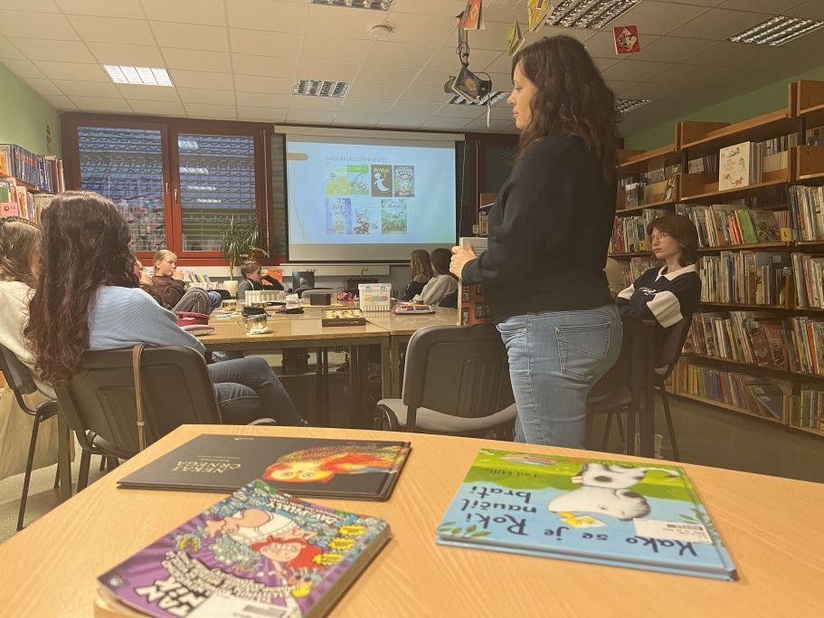 Poleg vsebine pa smo letos posebno pozornost namenili tudi zunanjosti knjige. Kako privlačna je črna barva za bralca? Je naslovnica pomembna, ko se odločamo za nakup ali izposojo knjige? Imeli smo priložnost, da vse to izvemo iz prve roke. Po večerji nas je namreč obiskala ena najboljših slovenskih oblikovalk knjig, gospa Nina Berčič Demšar. Predstavila je njeno delo in razkrila skrivnosti iz ozadja izdelave knjig. Na knjižnih policah imamo mnogo knjig, ki jih je oblikovala in jih radi beremo: od Harrya Potterja, Kapitana Gatnika do Kekca in Bedanca.