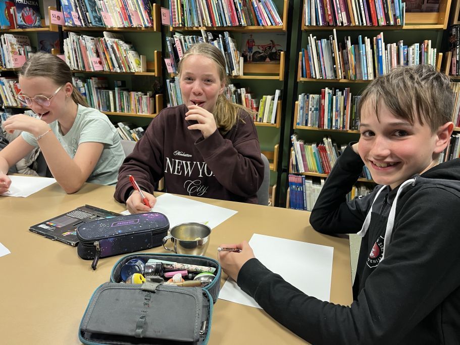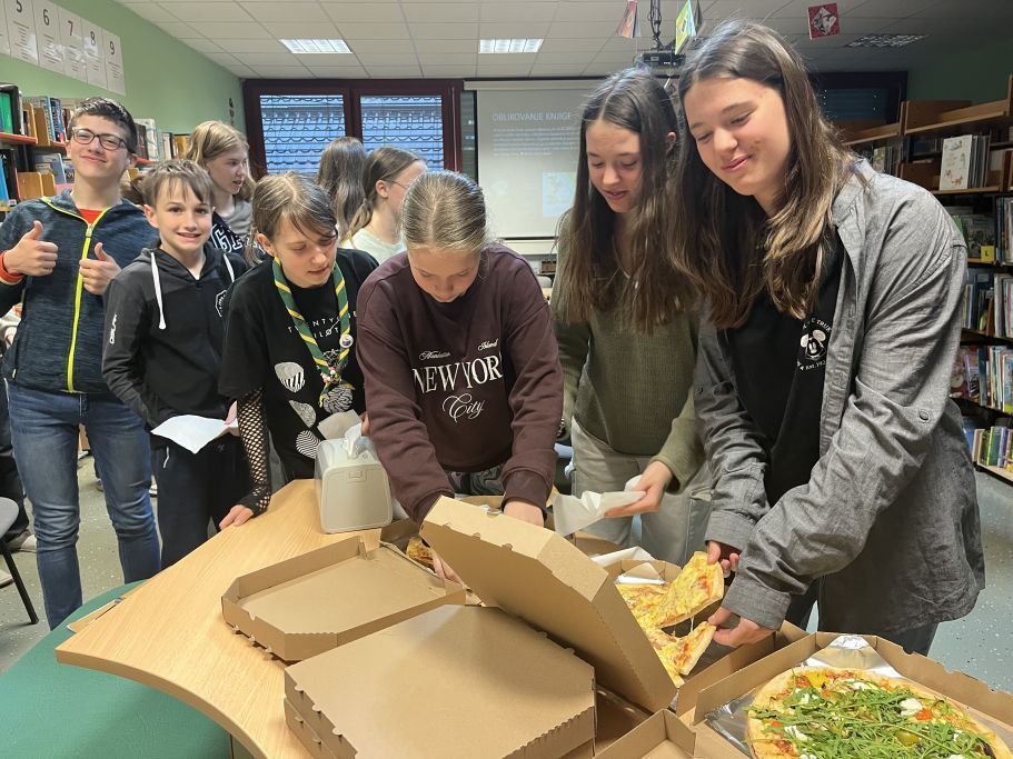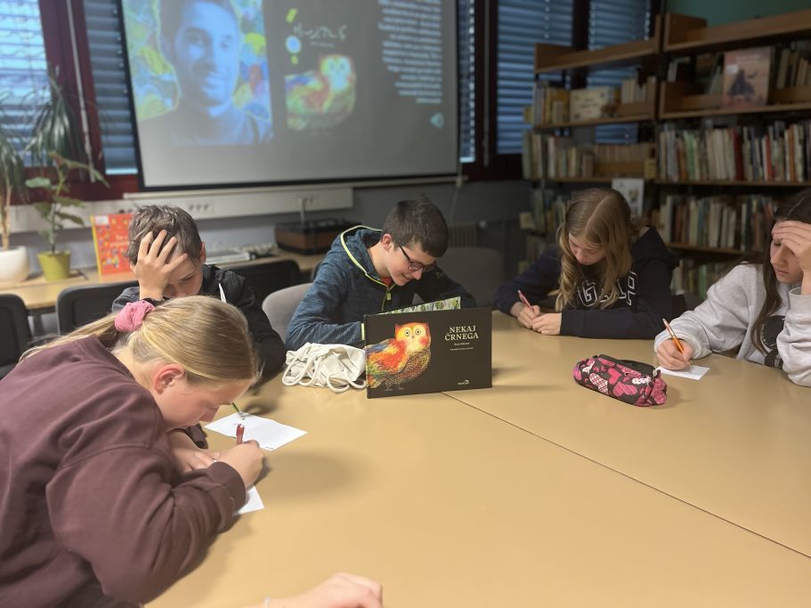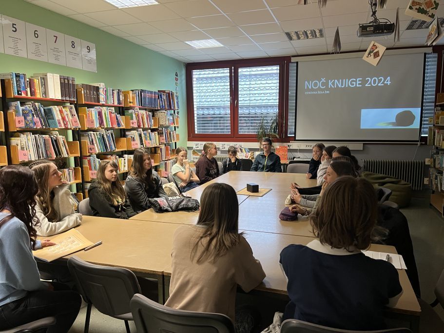 Le kaj je tisto nekaj črnega sredi omizja v šolski knjižnici? To smo se pogovarjali in spraševali v ponedeljek zvečer z učenci, povabljenimi na poseben dogodek ob svetovnem dnevu knjige – Noč knjige 2024!
