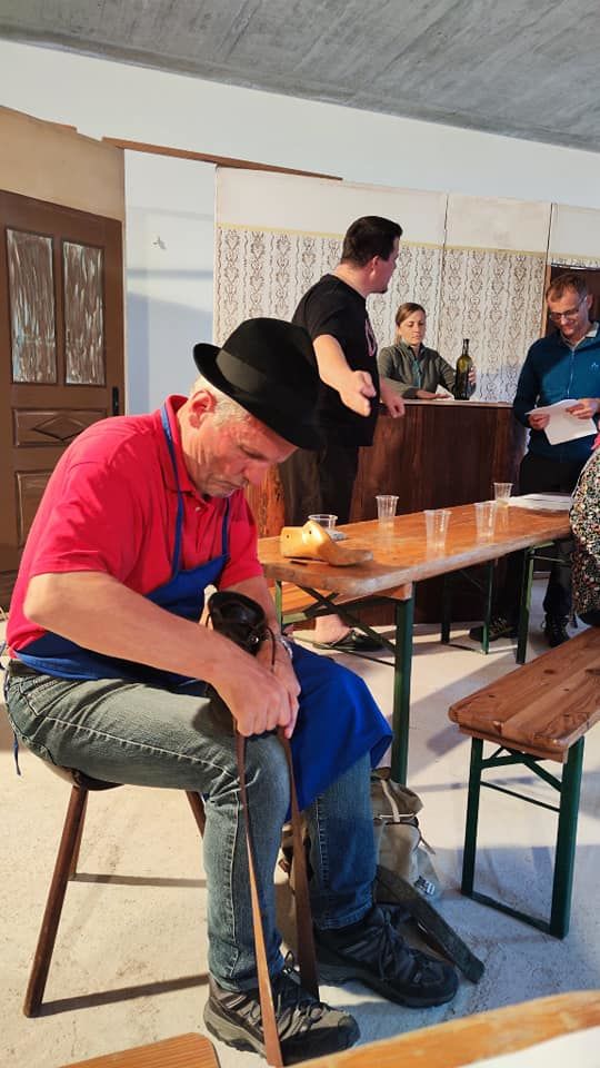 Besedilo zgodbe sta zapisali Lucija Kavčič in Tončka Oblak. Režijo pa je prevzela Lucija. Številčna dramska ekipa pridno vadi prizore, katerih glavna rdeča nit je zgodba o plašnem šoštarju. Celo življenje je brezupno iskal ljubezen svojega življenja, saj se do ženske ni upal pristopiti. V predstavi pa se zgodba obrne v njegov prid. Nadvse dinamična in pevsko obogatena igra, bo gledalcem na ogled 29. in 30. Julija 2023, v sklopu dogajanja na Prazniku žetve na Žirovskem Vrhu. Za pokušino pa nekaj utrinkov iz vaj.