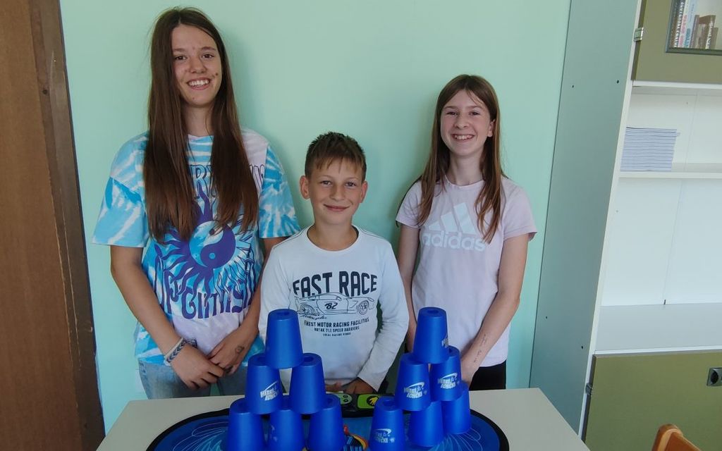 A to nas ni ustavilo – že prvi teden šole se je naša ekipa potegovala za uvrstitev med 32 najboljših ekip, ki se bodo pomerile v hitrostnem zlaganju lončkov v studiu TV Slovenija. In uspelo jim je! Mihael Bavdaž, Eva Pečelin in Nina Razingar nas bodo letos zastopali na tekmovanju Hitri lončki, ki poteka v okviru kviza Male sive celice. Čestitke!
