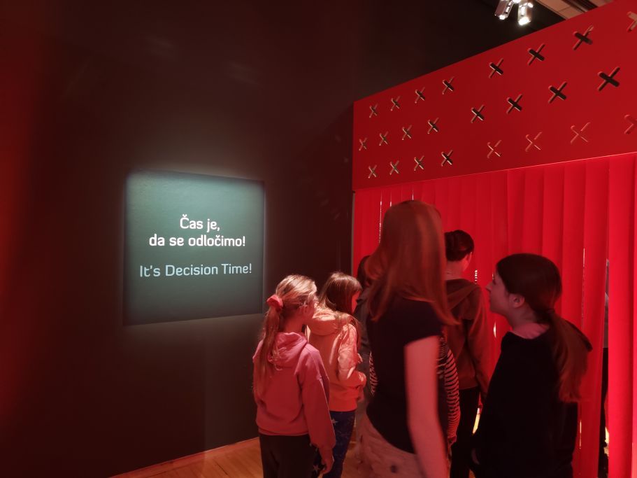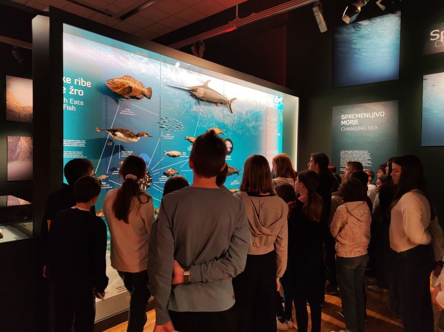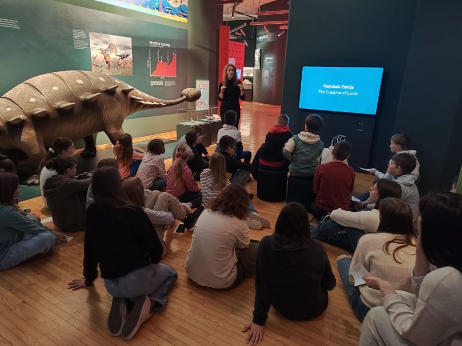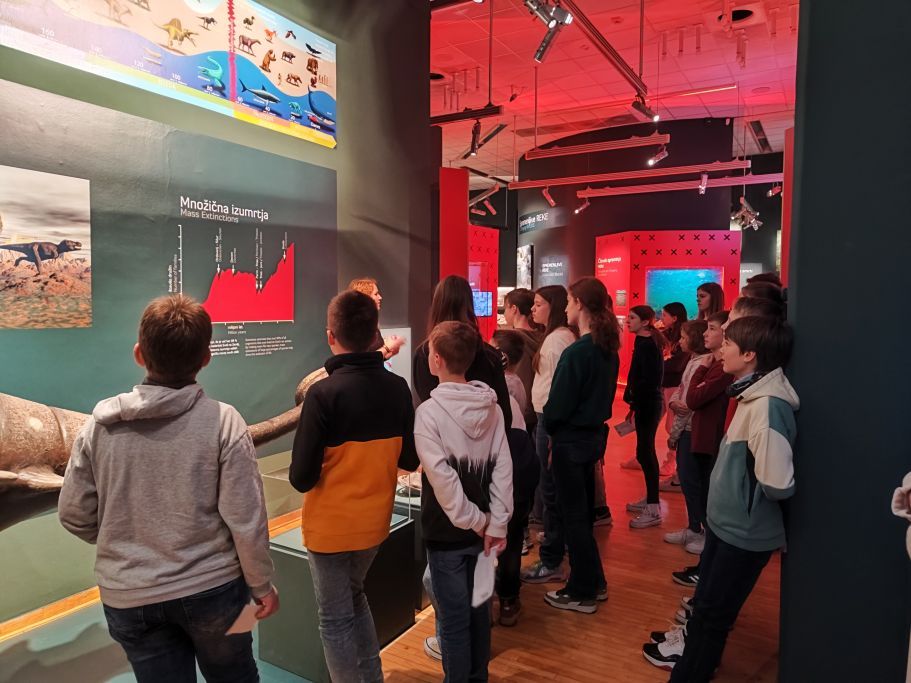 Sledil je voden ogled po razstavi V vrtincu sprememb, ki nas je popeljala skozi evolucijo Zemlje in življenja ter nam prikazala presenetljive in pogosto človeškim očem skrite spremembe, ki so stalnica v naravi. Med drugim pa je opozarjala tudi na spremembe, ki jih v naravi povzroča človek, ki pa ima hkrati tudi moč, da dela v dobro narave.