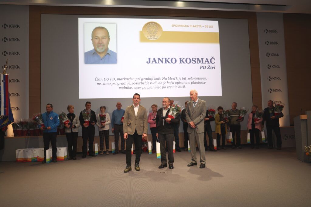 Med prejemniki spominske plakete je bil tudi član upravnega odbora PD Žiri Janko Kosmač. Priznanje je prejel za dolgoletno prizadevno in izjemno uspešno delo v društvu, kjer se je še posebej izkazal pri gradnji in upravljanju Koče na Mrzlk ter vodenju gospodarske komisije. S svojim delom, požrtvovalnostjo in skromnostjo je Janko Kosmač lahko zgled in spodbuda ostalim članom društva. Njegova delavnost in skrb za naravo, okolje in ljudi je povezana tudi z neprestanim izobraževanjem, saj se je pred leti dejavno priključil tudi markacistom PZS.