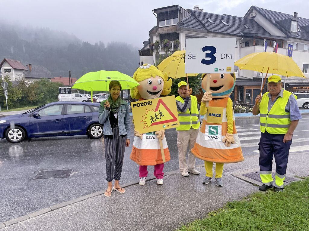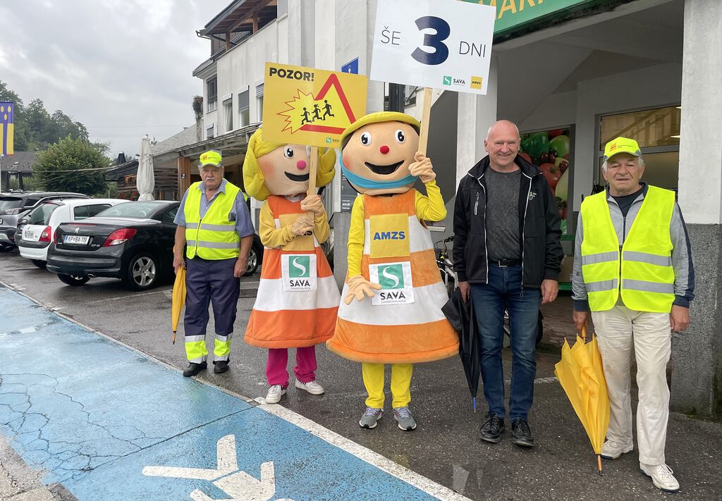 Maskoti Anja in Marko sta se v centru Žirov pojavili v petek, 29. avgusta in se skupaj s prostovoljci odpravila na dva prehoda za pešce in opozarjala voznike na otroke na cesti.