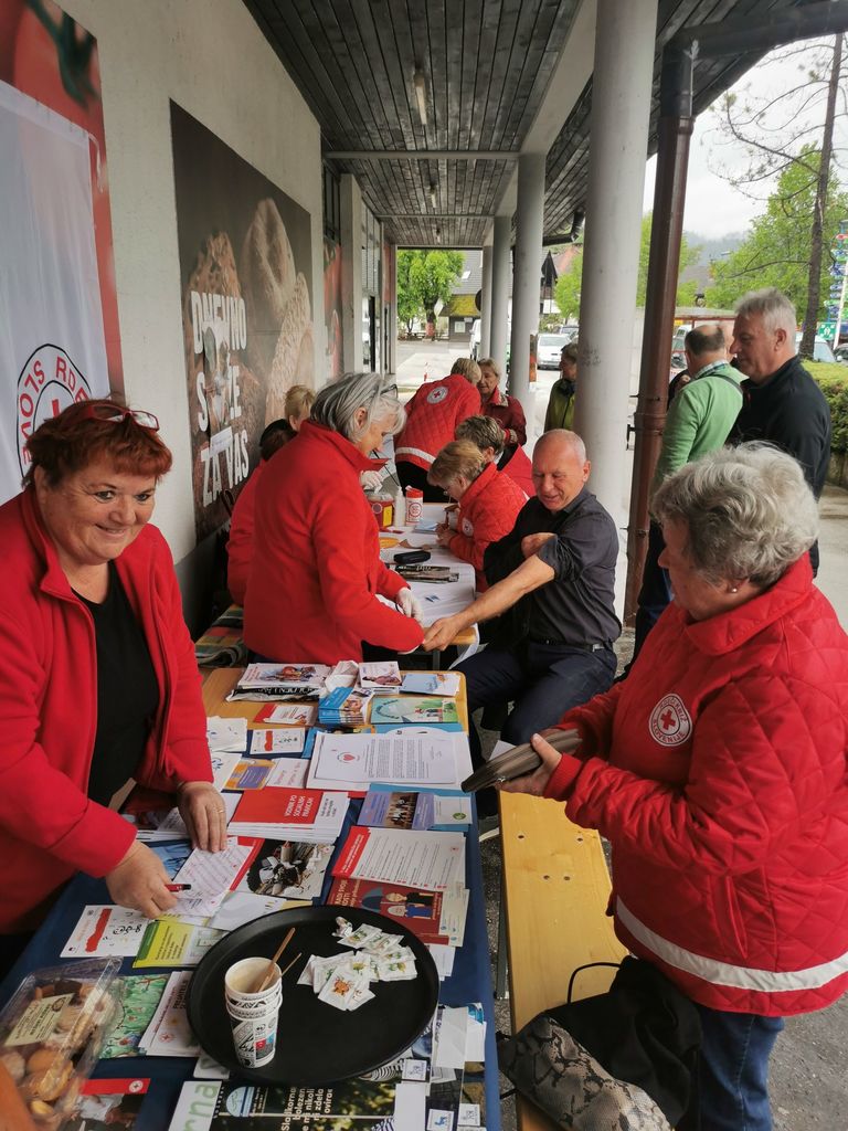 Krajevna organizacija Rdečega križa Žiri je 11. maja pred blagovnico v Žireh predstavljala svojo dejavnost, zraven pa so izvajali brezplačne meritve krvnega sladkorja in tlaka.