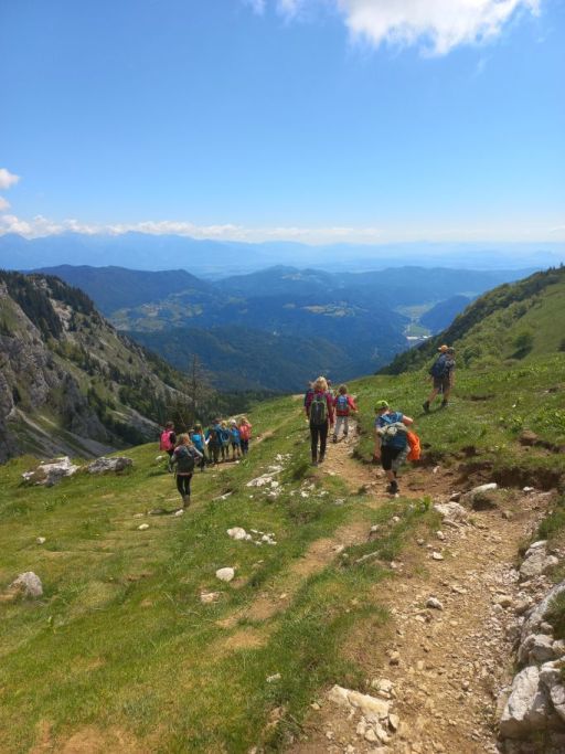 V soboto, 31. 5. 2025, smo opravili zadnji pohod v okviru planinskega krožka v tem šolskem letu. Za konec smo se odpravili na 1678 m visok Ratitovec. Že v zgodnjih jutranjih urah smo se iz Žirov odpeljali na izhodišče – vas Prtovč, kjer smo močneje zavezali pohodne čevlje, si nadeli polne nahrbtnike ter se dobre volje podali v strmo pobočje Ratitovca. Med potjo smo naredili več postankov za nekaj požirkov vode saj je bila pot tokrat kar dolga in naporna. Čas smo si krajšali z opazovanjem čudovitih rastlin, ki so rasle ob poti, s čudovitimi razgledi na kamnite vrhove, ki so se dvigovali nad nami ter s prijetnim kramljanjem z najljubšimi planinskimi prijatelji. Družbo so nam na nekaterih predelih delale tudi krave s svojimi zvonci, ki so jih iz nižjih kmetij ravnokar pripeljali na pašo v višje predele. Po dveh urah hoda smo pred seboj zagledali Krekovo kočo, iz katere je že omamno dišalo po dobrotah. Na vrhu smo uživali tudi v čudovitem razgledu na okoliške hribe in gore ter na pogumne padalce, ki so krožili nad nami. Strinjali smo se, da smo za pohod izbrali prečudovit dan. Ko smo izpraznili nahrbtnike in v planinske knjižice dodali še žig z Ratitovca, smo se vrnili v dolino. Zaradi hitre hoje vseh planink in planincev, ki so letos obiskovali krožek in v svoji hoji naredili res velik napredek, smo se v Žiri vrnili predčasno. Leto tako s planinskim krožkom zaključujemo več kot uspešno ter se ob tej priliki zahvaljujemo Planinskemu društvu Žiri, ki nas je pri izvajanju finančno podpiralo in v njegove vrste vabimo nove člane zopet prihodnje šolsko leto. Planinski pozdrav, Andreja Mlinar