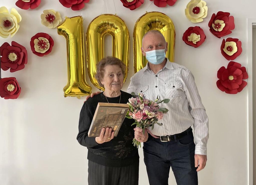 V občini se je februar pričel s prijetnimi dogodki. Po praznovanju kulturnega praznika in otvoritvi razstave ob 80-letnici častnega občana Tomaža Kržišnika je častitljivih 100 let praznovala naša draga občanka gospa MARIJA OSTANEK, po domače Mici. V Domu starejših občanov Žiri so ji pripravili lepo praznovanje v krogu domačih in oskrbovancev. Veliko zdravja, osebne sreče in dobrega počutja sta slavljenki zaželela tudi župan Franci Kranjc in predsednik Društva upokojencev Milan Sovinc.