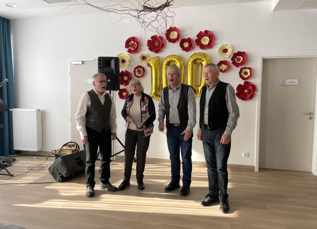 Čarobnost praznovanja so slavljenki in oskrbovancem doma ter obiskovalcem pričarali s svojim petjem pevci iz Gorenje vasi, harmonikar Luka in zvoki lajne. Manjkala pa ni niti rojstnodnevna torta.