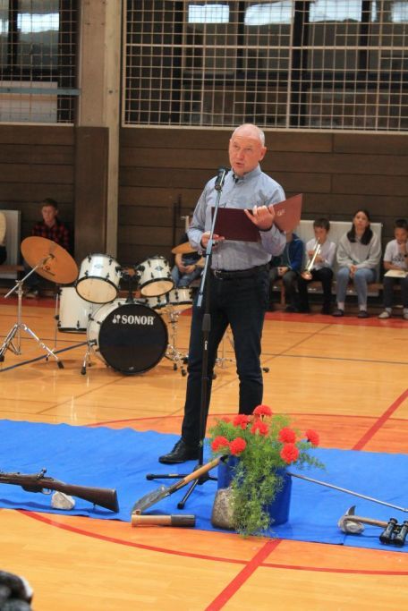 V petek, 8. novembra 2024, smo tudi na naši šoli v kulturni prireditvi podoživeli čas po prvi svetovni, ko je Rudolf Maister s prvo slovensko vojsko pogumno posegel v določitev mej slovenskega ozemlja na Koroškem in Štajerskem. Po uvodnih nagovorih Janeza Jereba, predsednika Domoljubnega društva Rudolf Maister Žiri, župana Francija Kranjca ter mag. Lučke Lazarev Šerbec, predsednice Zveze društev general Maister, so učenke in učenci naše šole ob spremljevalnem glasbenem programu predstavili življenje in delo Rudolfa Maistra. Ker letos praznujemo tudi 180-letnico rojstva Simona Gregorčiča, smo v dramskem prizoru lahko prisluhnili obema – Maistru in Gregorčiču. Poleg kramljanja o njuni osebni poti, sta se dotaknila tudi pomembnih zgodovinskih dogodkov.