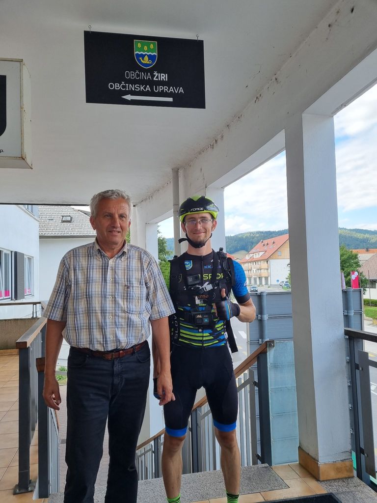 27. 7. 2022 ga je pot peljala tudi skozi Žiri, kjer ga je sprejel in pozdravil podžupan Jože Stanonik ter mu zaželel srečno pot.