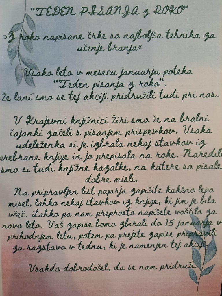 Zraven pa sodelujte še v akciji "Teden pisanja z roko"