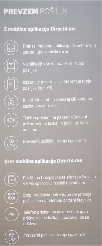 Za upravljanje s paketnikom, uporabniku ni potrebno nalagati posebne aplikacije – zadošča že telefonska številka. Če uporabnik želi več informacij, pa je aplikacija Direct4me, ki je brezplačna, zaželena.