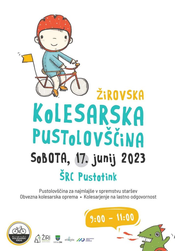 V soboto, 17. junija 2023, med 9. in 11. uro, ste lepo povabljeni na Žirovsko kolesarsko pustolovščino v ŠRC Pustotnik.