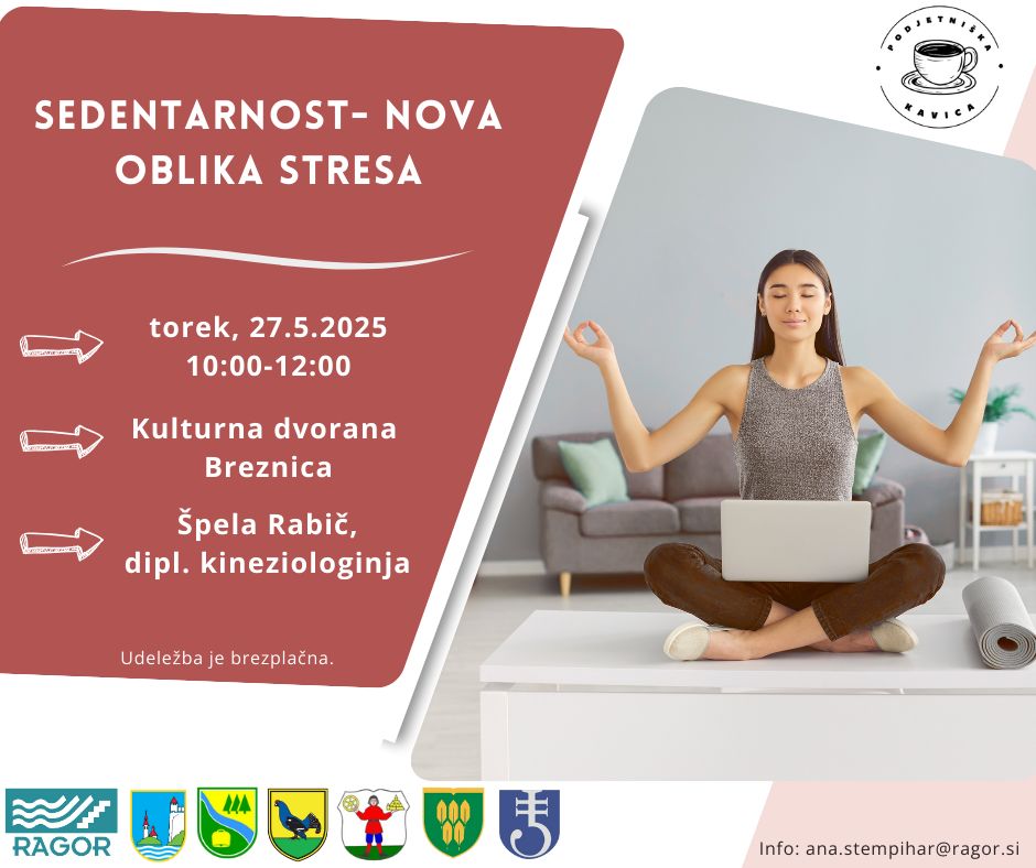 V torek, 27. 5. 2025 bo od 10:00 do 12:00 v Kulturni dvorani Breznica potekala delavnica Sedentarnost - nova oblika stresa
