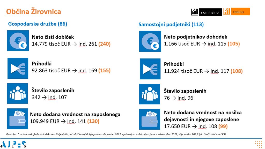 Več podatkov o poslovanju poslovnih subjektov v letu 2022 v občinah gorenjske regije si lahko preberete v Informaciji o poslovanju gospodarskih družb, samostojnih podjetnikov in zadrug v gorenjski regiji v letu 2022.